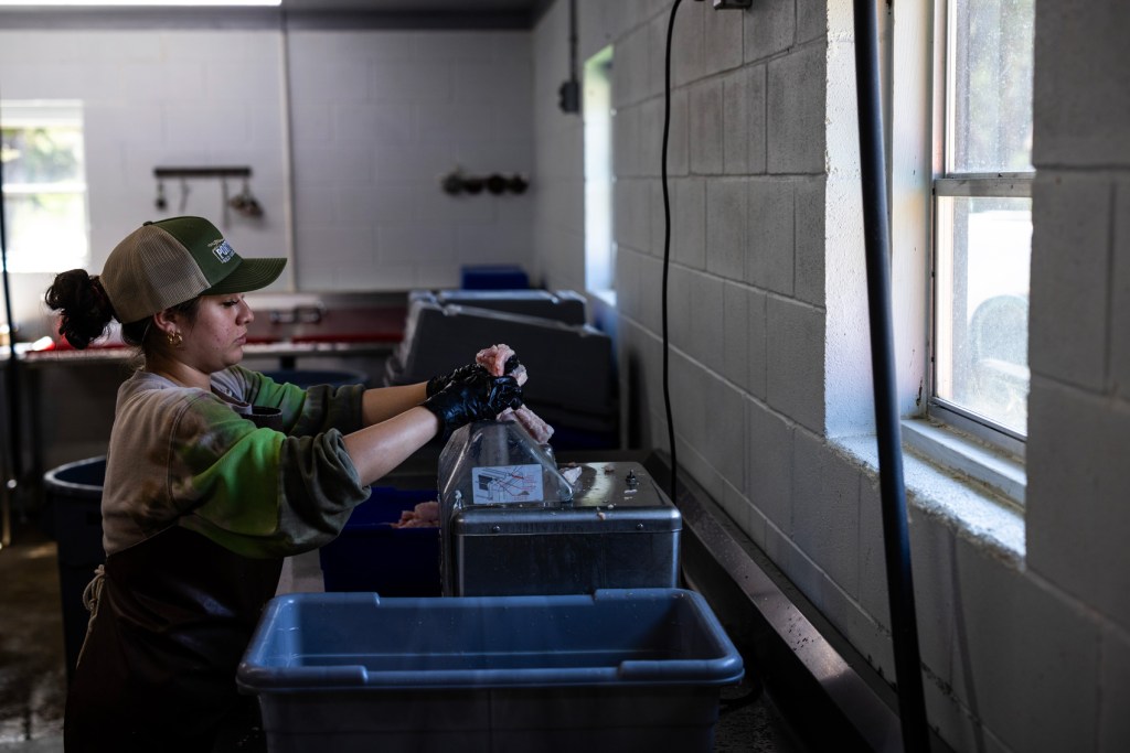 Inside the center, workers salt and freeze the hides before shipping them to American Tanning & Leather, a Georgia-based tannery that Porter’s contracts with.