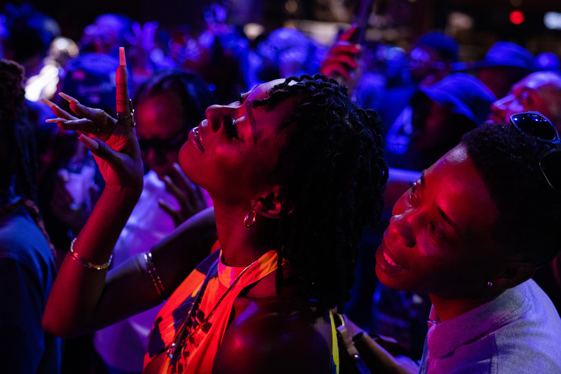 On the second floor of Stampede Houston, dozens of attendees danced and sang in unison and three-part harmonies resembling a mass choir as Drayton mixed countless classic gospel hits like Kirk Franklin’s “Melodies from Heaven,” the Clark Sisters’ “Blessed and Highly Favored,” and Richard Smallwood’s “Total Praise.”
