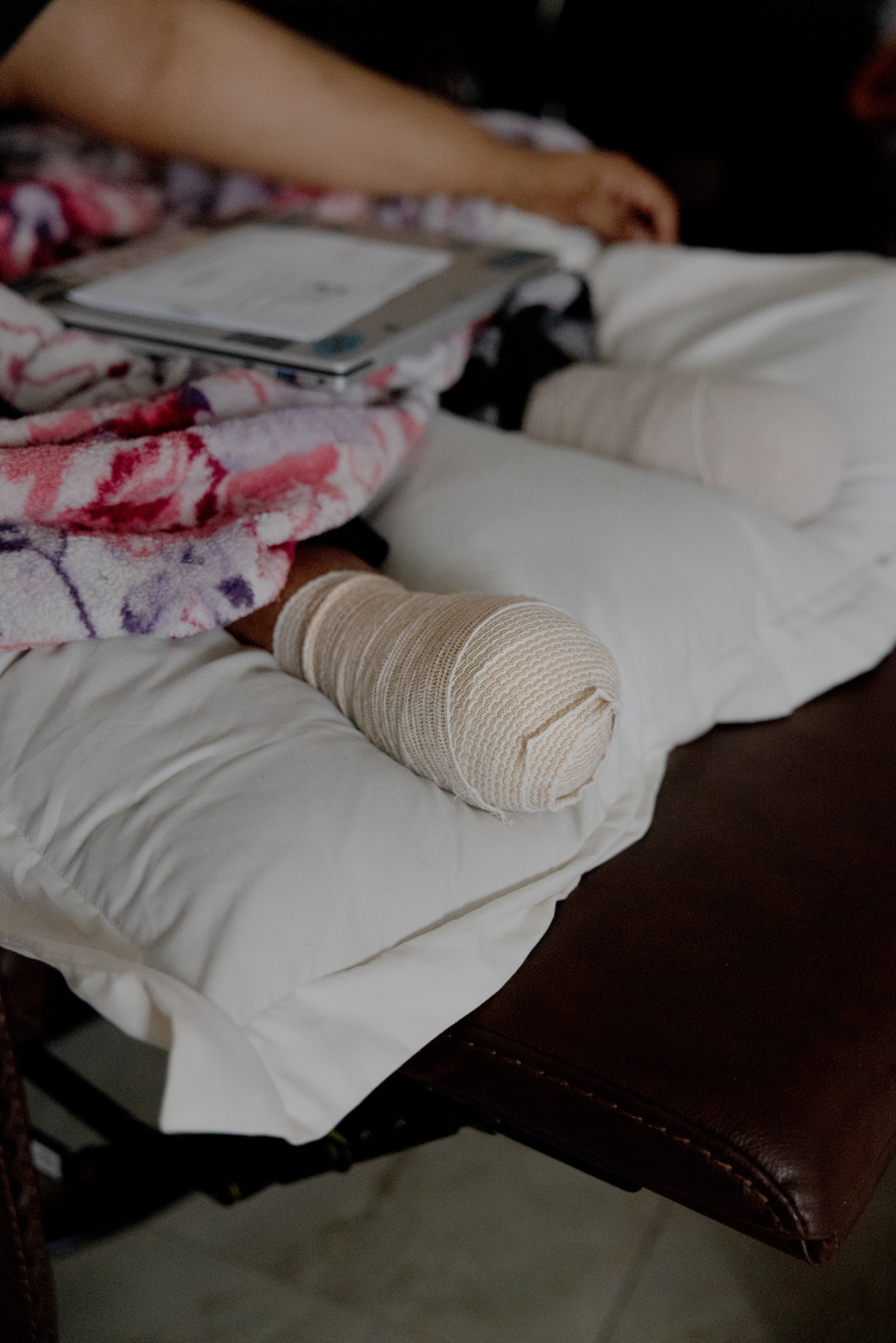 The Payán house was quiet the morning of Erik Payán’s bond hearing. Alondra did the dishes while listening to a Youtube video on her headphones. Morales prayed at the kitchen table, anxiously waiting for an update. Kyomi, while getting her breakfast through her feeding tube, dozed off in her chair.