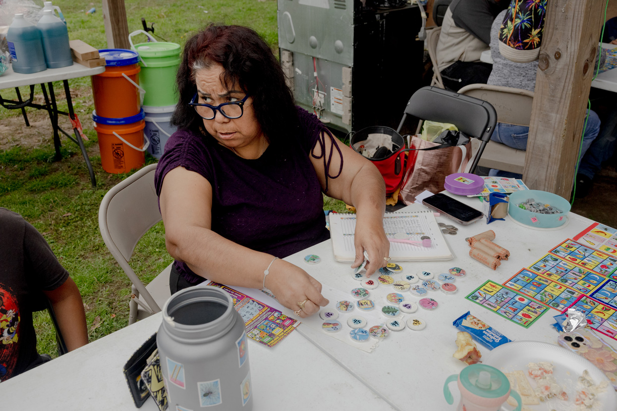 After her successful lotería event, Morales visited the family tire shop for the first time since her husband was detained. She fed their chickens and collected any eggs they had laid in order to sell them and cover some of the family’s bills.
