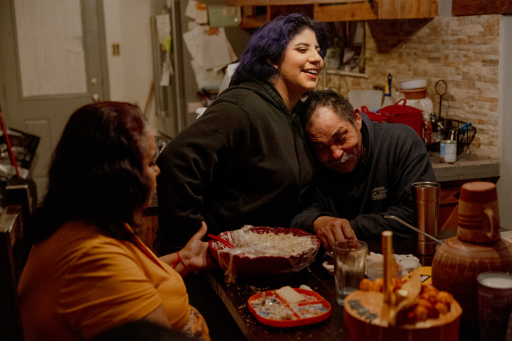 The house sprang into action. Morales made calls to friends, family, and Erik Payán’s sponsor, as they scraped together the bail money. At 2:30 p.m., the bail had been posted. All that was left to do was wait. The women started to put makeup on, laying on fresh lashes, and braiding hair. Alondra helped her mother prepare beans and pork rinds in green sauce, the dinner Morales was going to cook for her husband the day he was detained nearly a month ago.