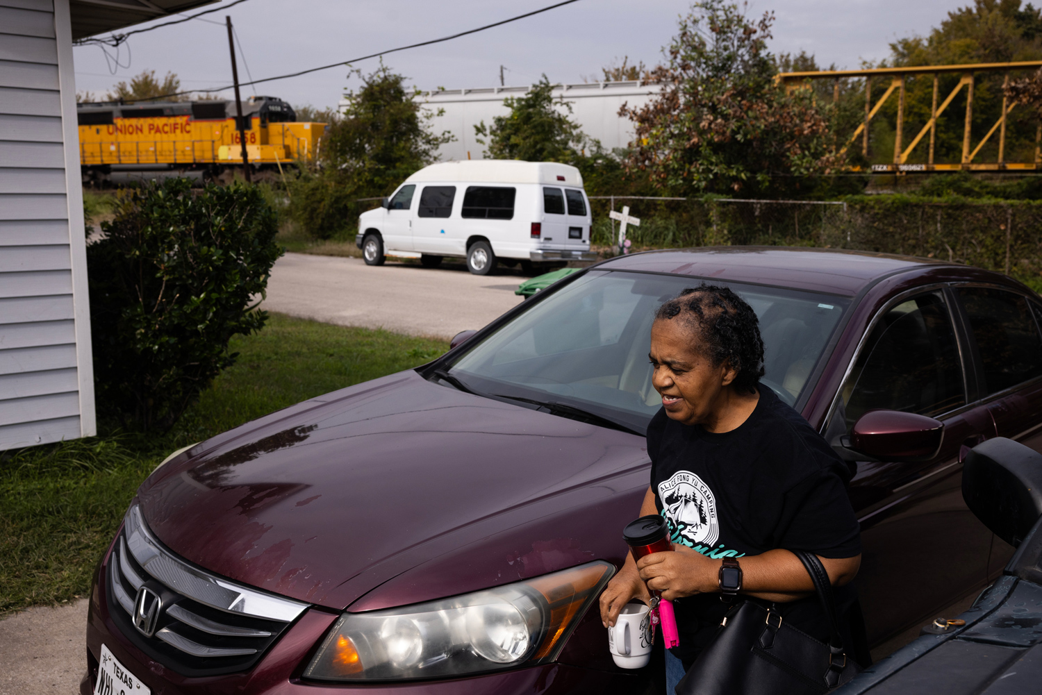 Sandra Auzenne came to Houston’s Greater Fifth Ward after evacuating New Orleans post-Hurricane Katrina. Now, she must deal with life living across from the train tracks. In a typical week, she picks her granddaughter up from school, goes to doctors’ appointments, and also worries about the crack in her home’s foundation. “If I had known about all this before, if someone had told me, I would have never moved in here,” she said. (Antranik Tavitian / Houston Landing)
