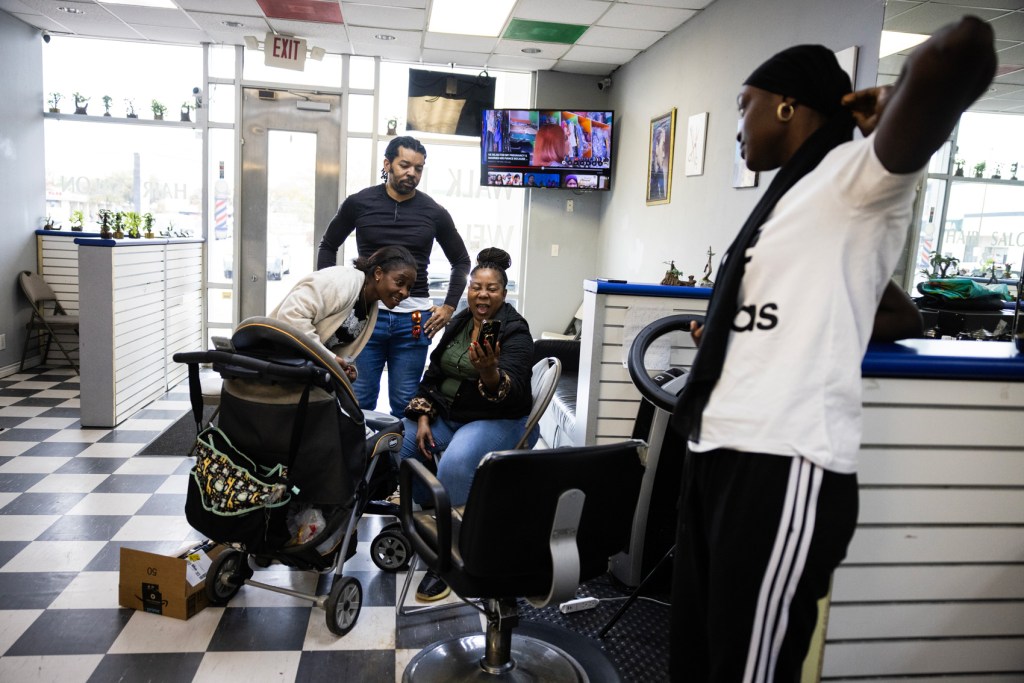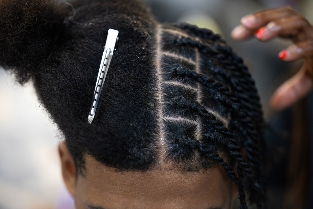 On the recent Wednesday, stylist Hope Erinle applied styling gel to Nelson Ofarrill’s hair as she sectioned it into boxes for braiding. “Beauty is pain,” Ofarrill said with a grimace as Erinle tightened the twist in her hand.