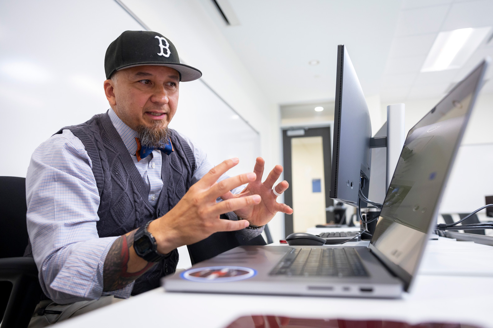 At the back of the classroom on a recent Wednesday, San Jacinto Senior Cybersecurity Analyst Nico Hovsepian sat behind three computer monitors, ready to help students if needed — and also learn a thing or two. While he’s been in the cybersecurity industry for over two decades, he’s also studying for a bachelor’s degree in the subject from the college.