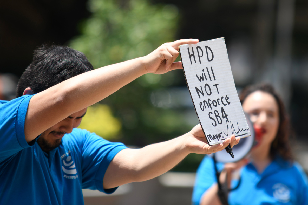 Immigrant rights organizations rallied at City Hall on Tuesday to ask the mayor and the city’s Police Department to create formal policies to protect Houston’s immigrants from Senate Bill 4, a controversial law that would allow state law enforcement to arrest anyone suspected of entering Texas illegally from Mexico.