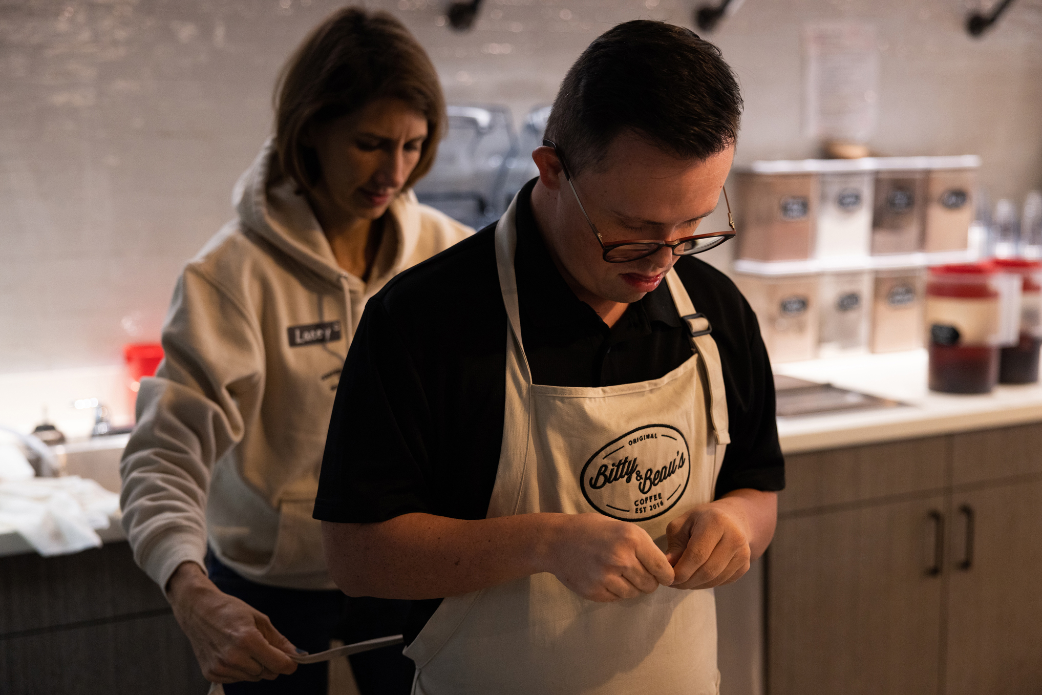 Although Suarez has only marked five months at Bitty & Beau’s, she hopes it’ll be a longtime career for him. But that will come with time, she adds, once he’s comfortable moving up to other positions like a drink maker or cashier.
