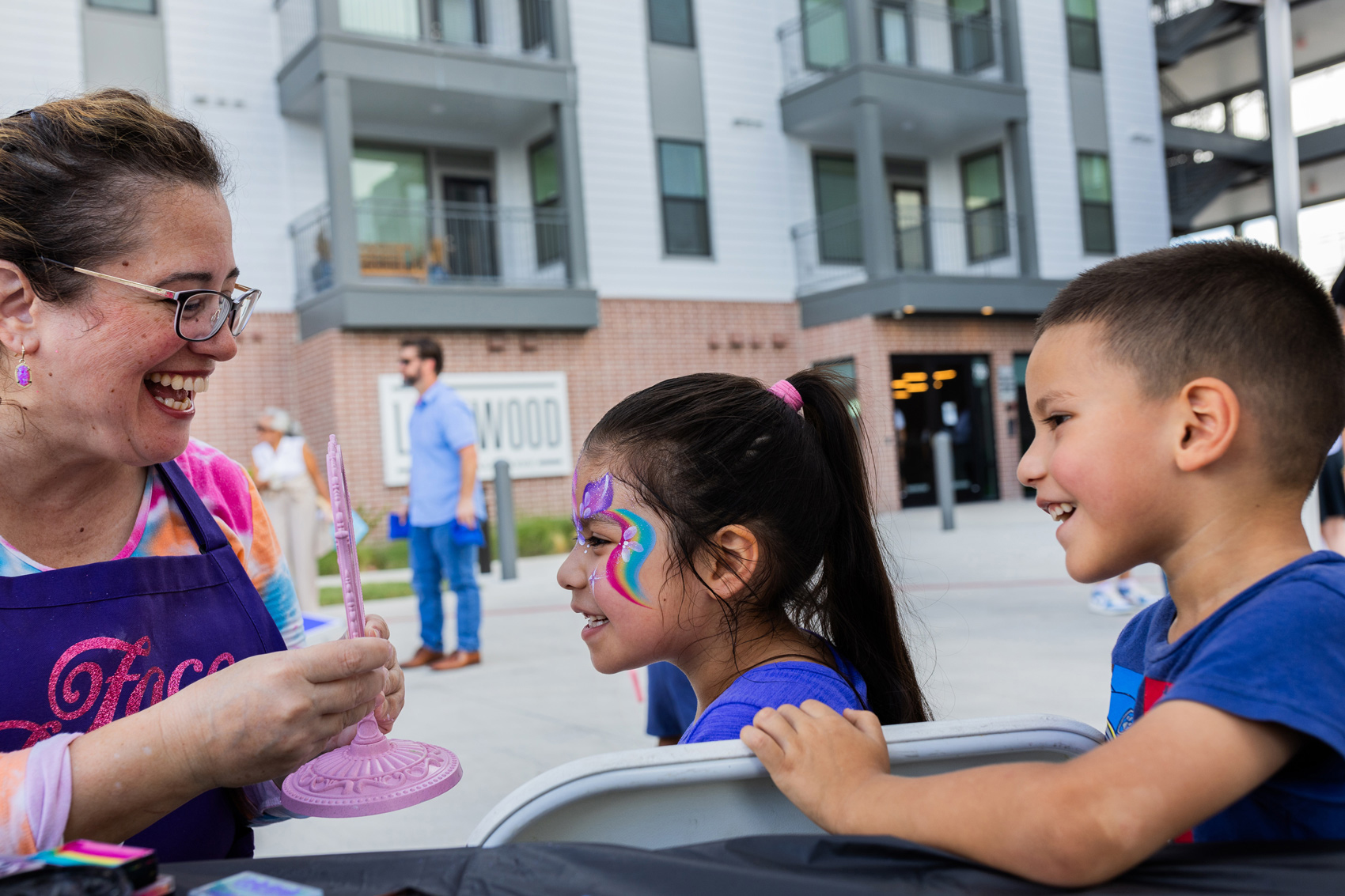 During Saturday’s festivities Jesús Aviles smiled as his eldest, Ariel, had rainbow-colored streaks painted across her cheeks for Lockwood’s first neighborhood party hosted by the Buffalo Bayou Partnership.