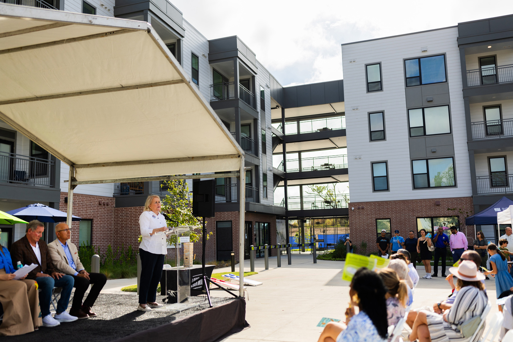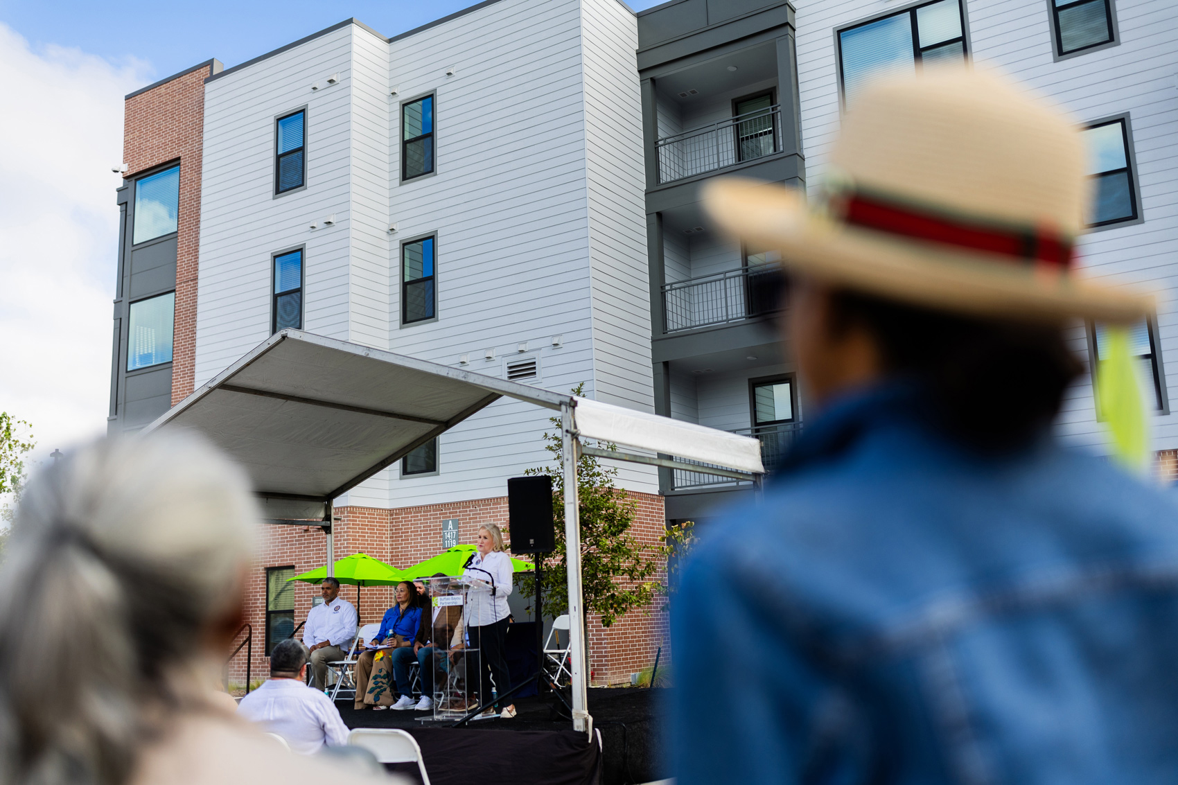 During a ribbon cutting ceremony on Saturday, U.S. Rep. Sylvia Garcia (D-Houston) commended the Buffalo Bayou Partnership and its real estate partner, Brinshore Development, for establishing the project’s first affordable housing apartment complex.