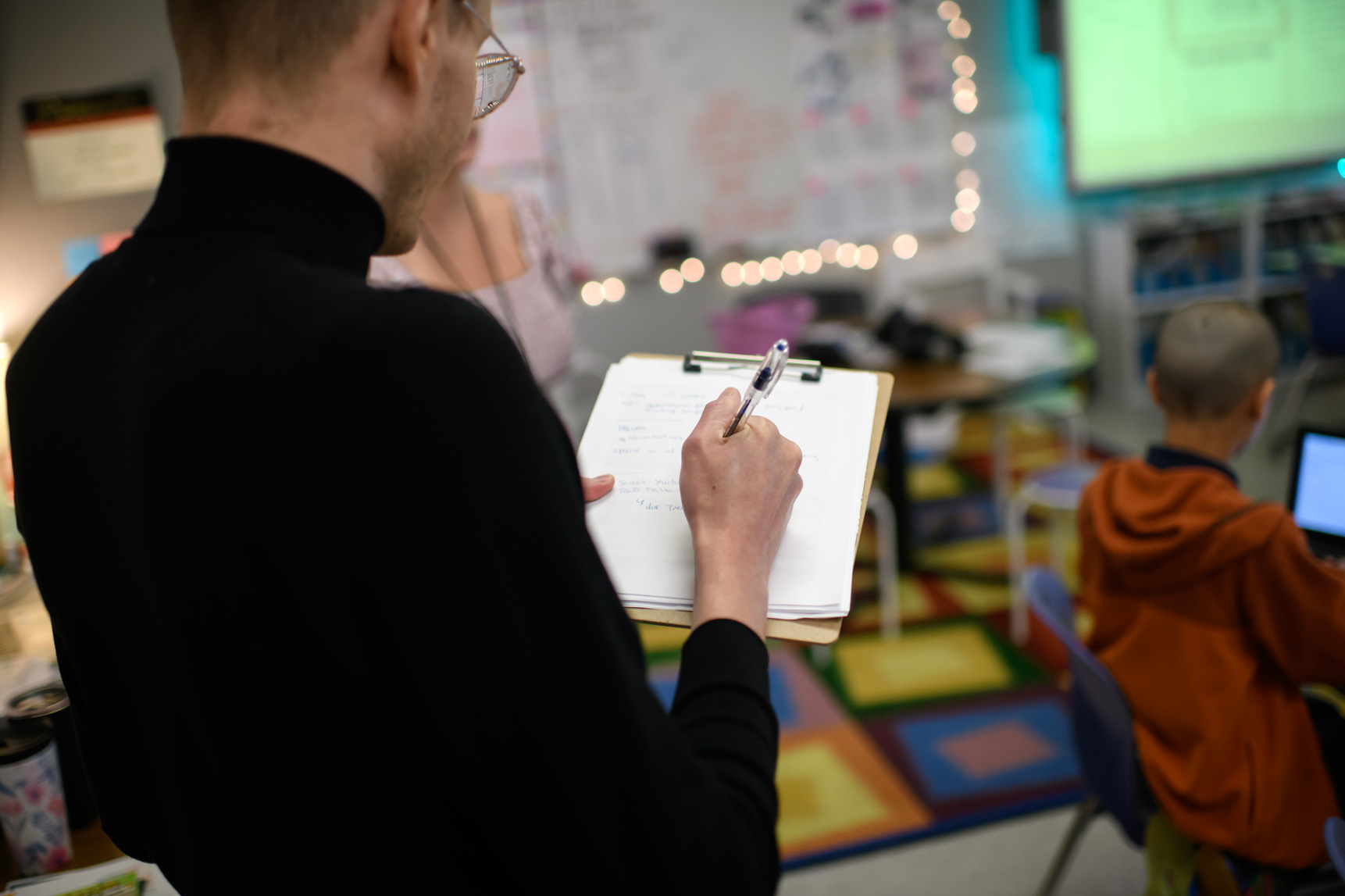 On a given day, he starts his morning going from class to class, making sure they have no issues. As the day goes on, Hunt begins visiting classrooms, calmly stopping to chat with children and taking note of how teachers are delivering instruction and ensuring students understand the lesson. If he spots an opportunity for improvement, he’ll quietly talk with the teacher away from students or make a note for a future chat.