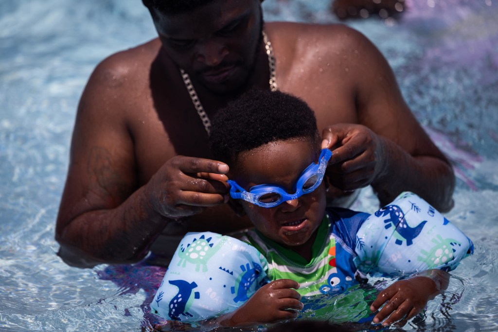 Now that the neighborhood pool is open to residents, Fatima says she and Lina come as often as possible — about twice a week, especially in this current heat wave. She only wishes the city could find a way to keep it open seven days a week so her family could come more often.