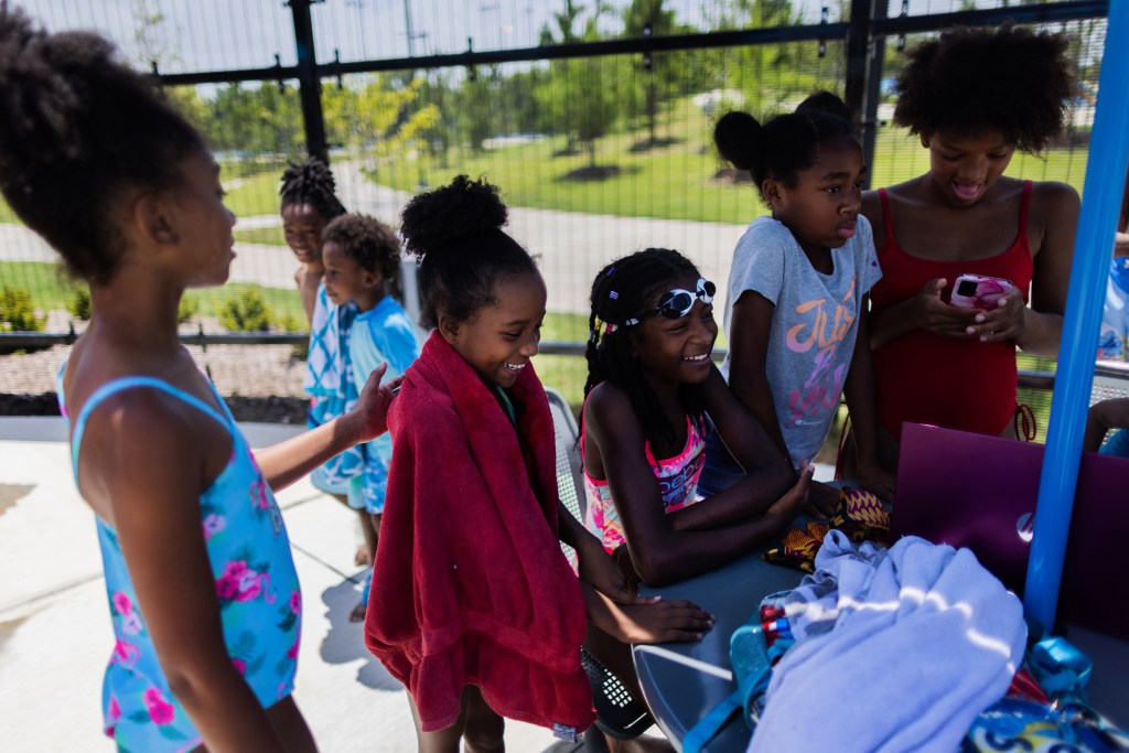 Fatima Tanarhte is effusive in her gratitude for Lina’s access to a public pool in their neighborhood. The massive pool in Alief, complete with a waterslide, is brand new this year. In all Fatima and Lina’s previous summers — save those they travel to Fatima’s native Morocco — they’ve been unable to find a place within their budget where Lina can learn to swim.