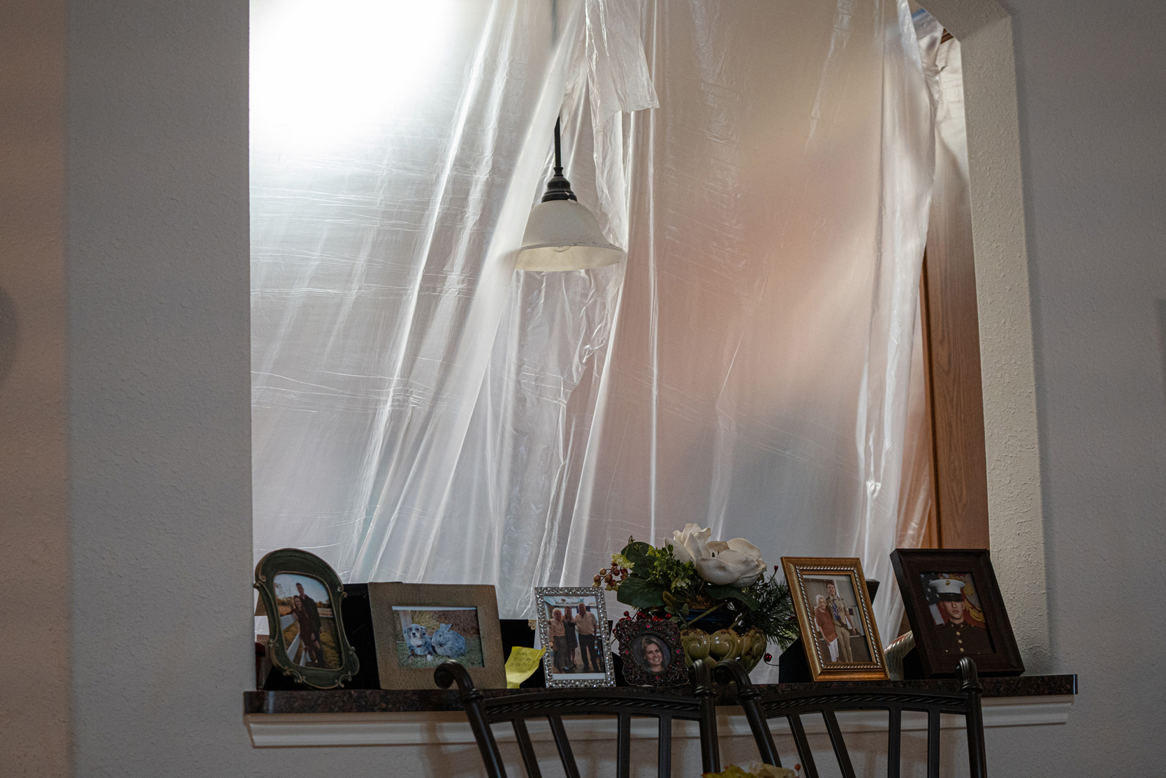 Weeks after the fire was extinguished and the pipeline rebuilt, Zann’s home was still in the process of being put back together. “I can’t even get in the kitchen,” she said looking toward the tarps that workers had put up to help keep dust and debris out of her living room.