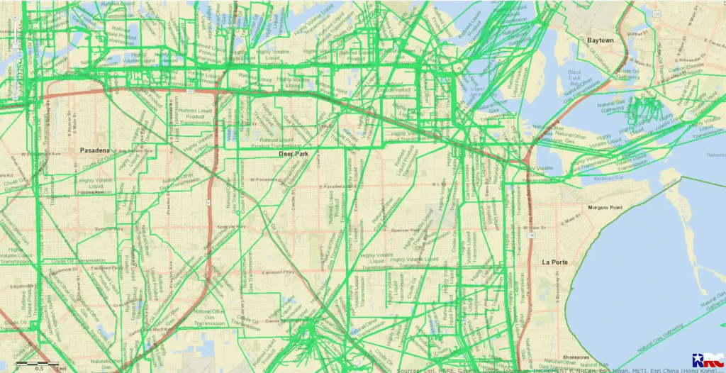 Texas has the largest pipeline infrastructure in the nation – about 480,000 miles of pipelines – and maps show many of these lines are concentrated in the Houston area.