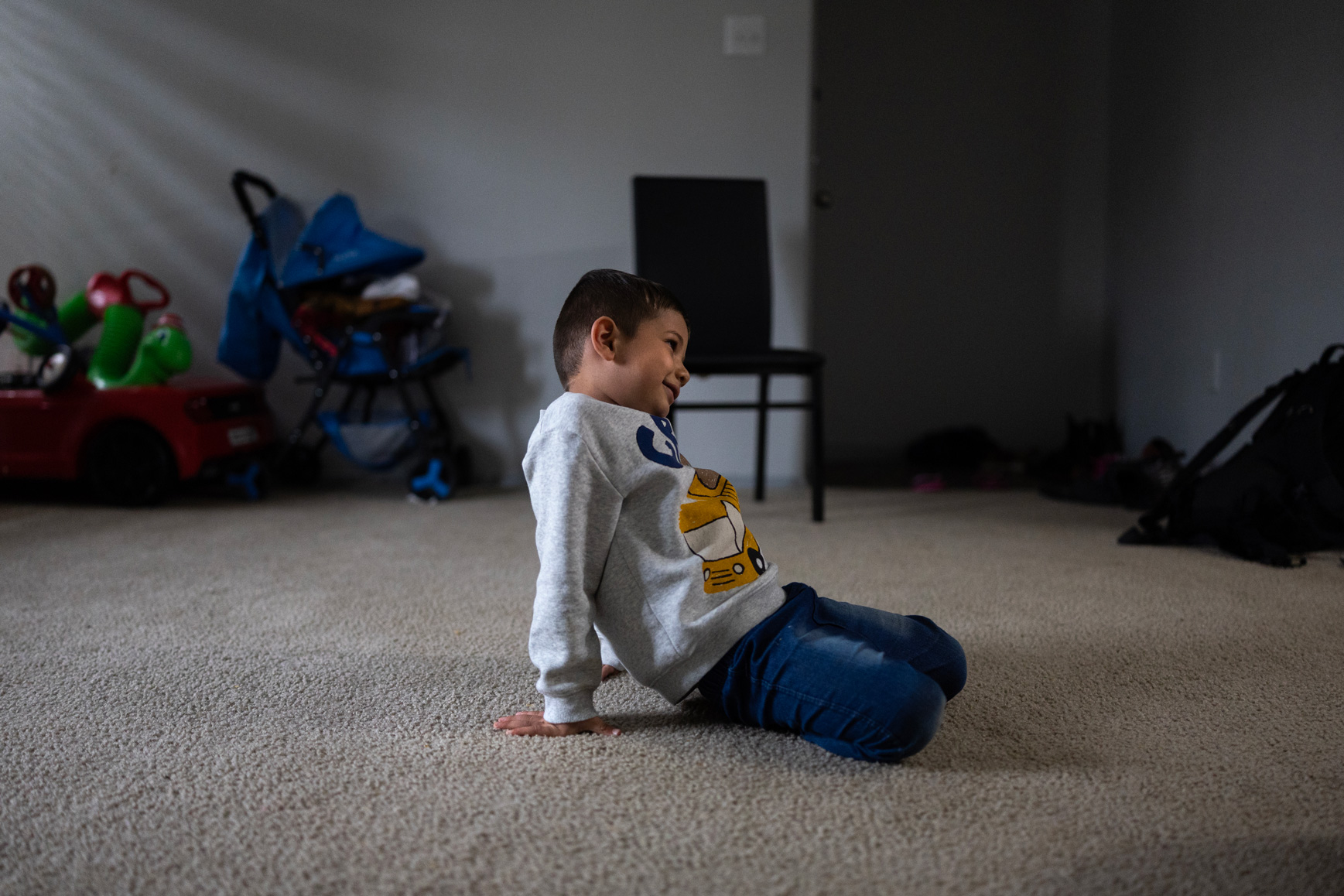 Sayedi also is worried about paying his bills. He has found part-time work at a manufacturing company, but he barely takes home enough to cover rent. His three boys, aged 6, 5 and 2, have few clothes and no beds to sleep on. The only donated toys they have are a small green inchworm ride-on toy and a red ride-on car sitting by the front door.