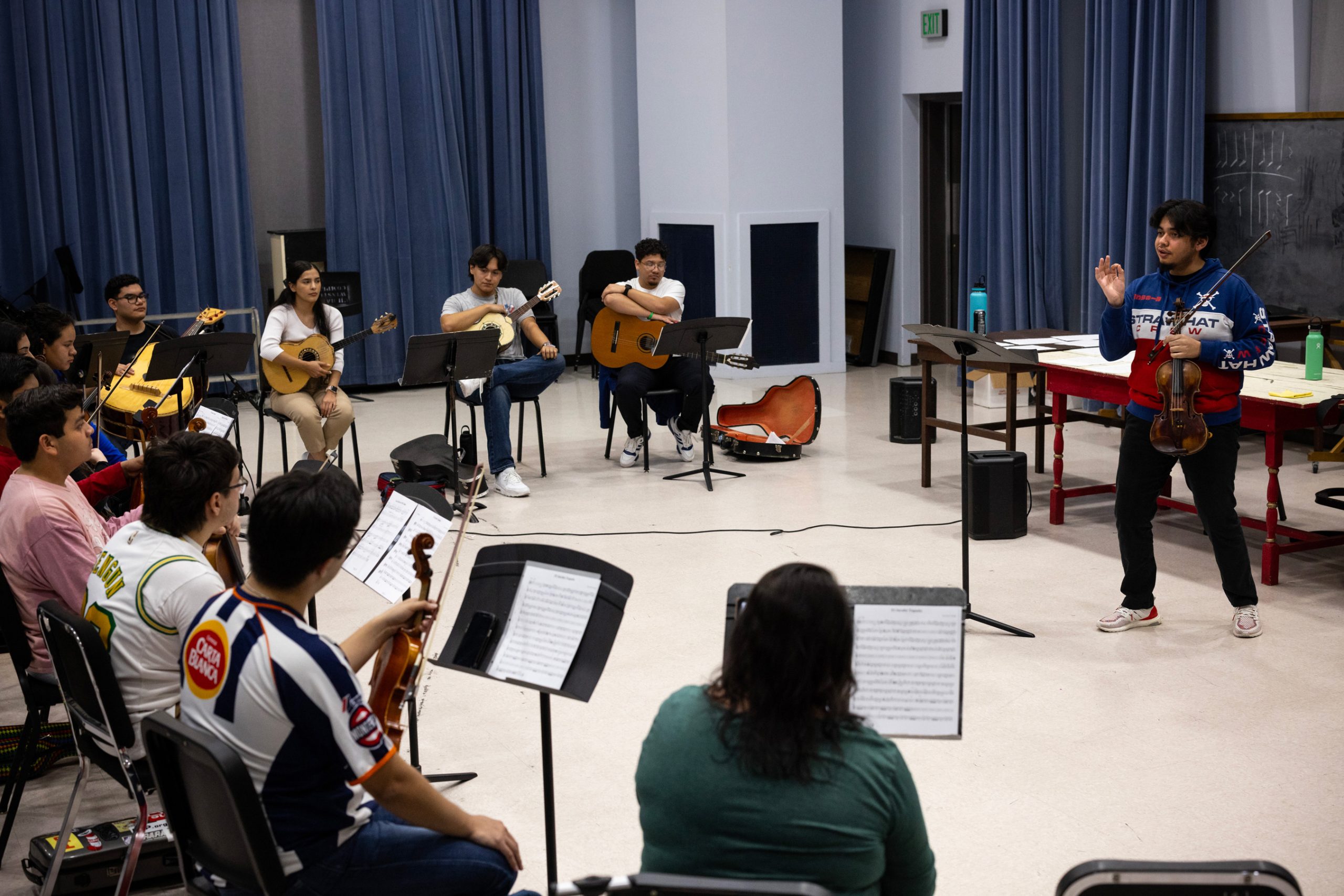 Compared to orchestra, “Mariachi [is] more [about] going off the rails. Less unison. Less formality,” Quesada said. “It’s more [about] trusting each other… basically not become one, become all.” He added, “It brings out that feeling of a mariachi being this whole family.”