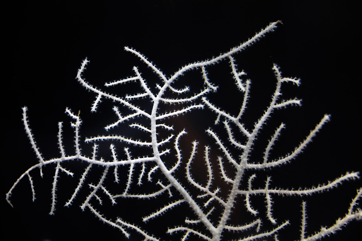 Deep-sea coral feeds differently than their shallow-water cousins. Coral in the shallow parts of the ocean use a process called zooxanthellae, in which algae living on the coral’s tissue will absorb sunlight to make sugar that passes through to the coral. Deep-sea coral does not get enough sunlight for this process and must feed entirely using its tentacles.