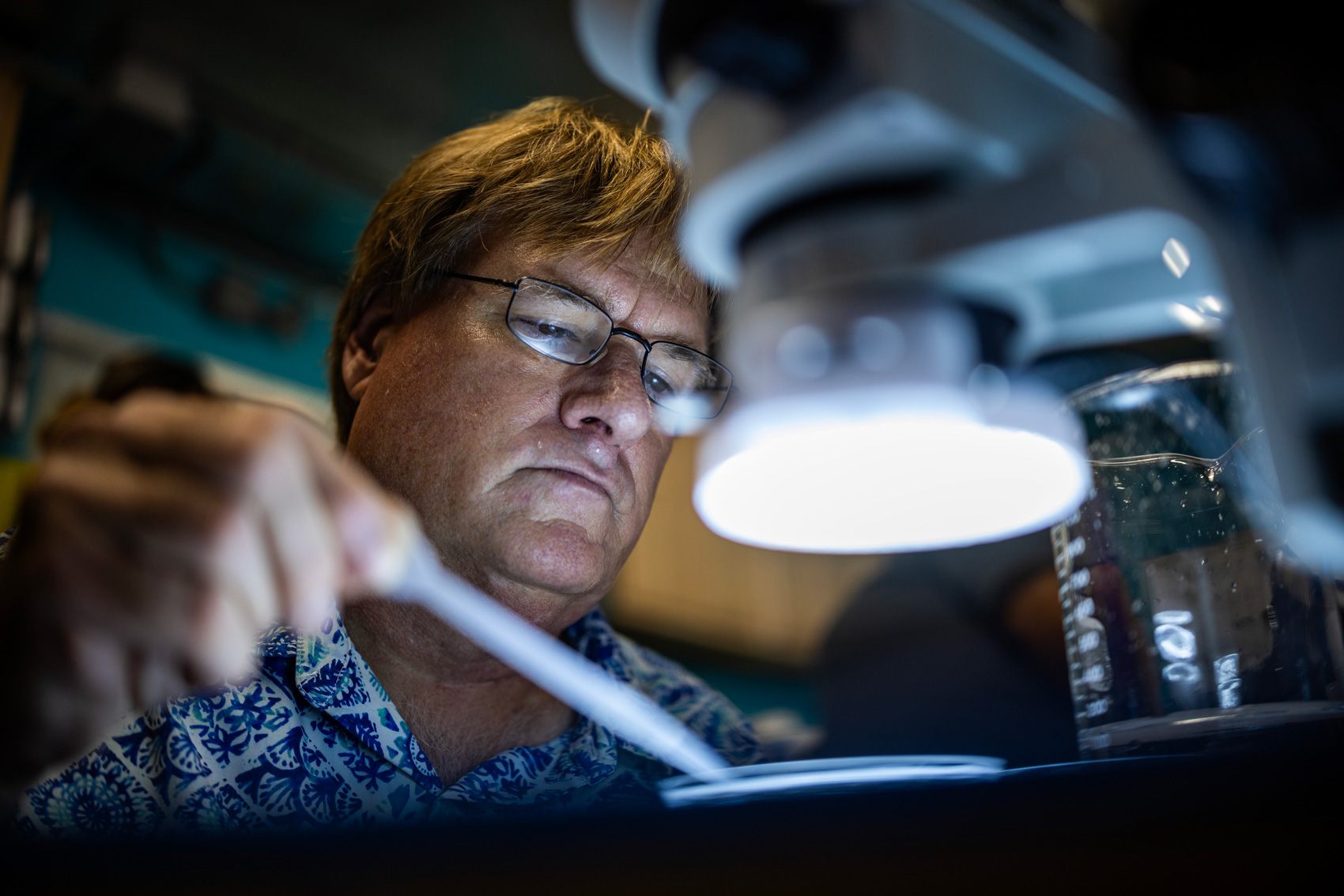 In the early morning, at a lab not too far from the Galveston coast, Shannon Ainsworth is collecting hundreds of tiny, floating brown eggs from a tank of deep-sea coral. She sticks a little plastic dropper into the water, sucks up an egg or two, and deposits them into a beaker on top of the tank. Then she repeats.