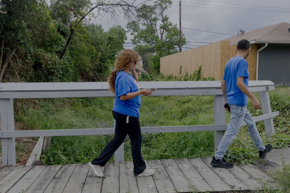 The majority of these canvassers speak both English and Spanish, but there are still barriers, mostly physical, along the way — fences, gates, roaming dogs or threatening signs. But the team is trained to make conversation however it seems feasible and safe.