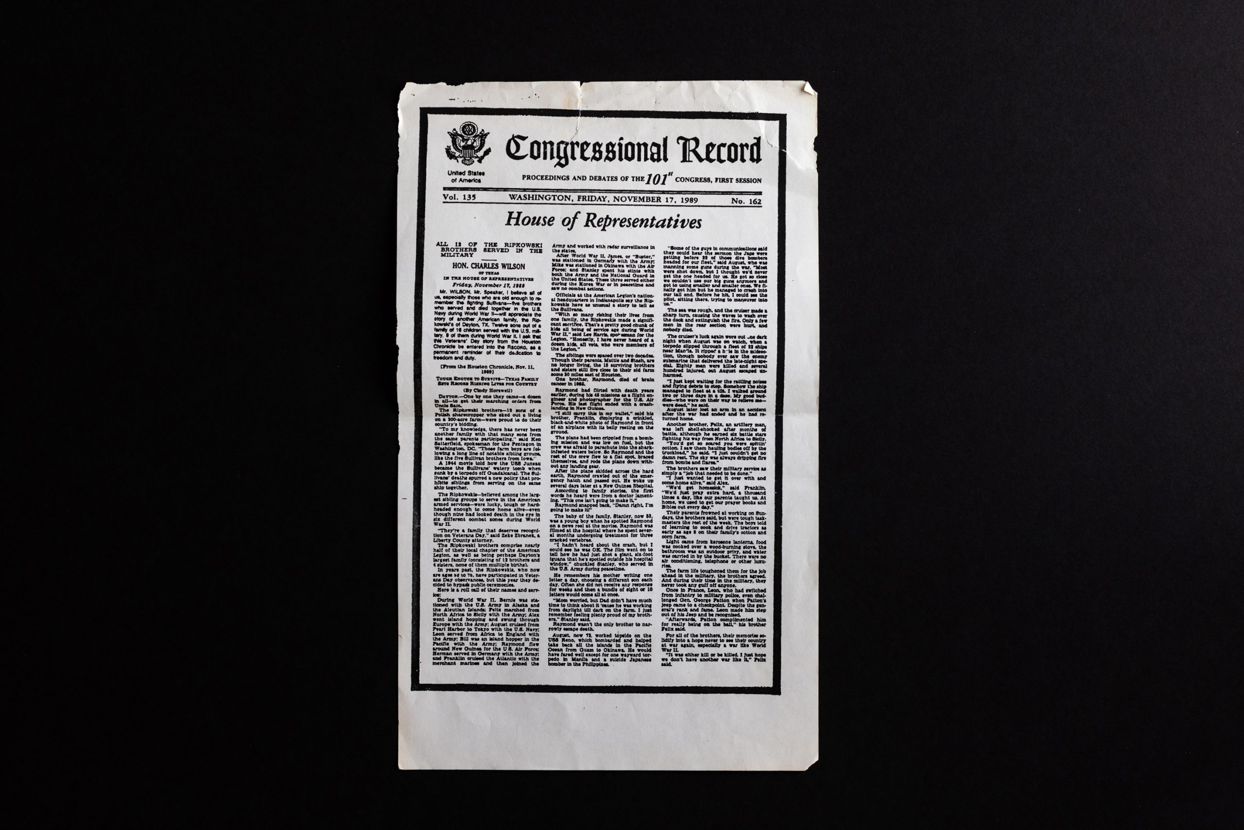 The trio are the last surviving siblings of the Ripkowski family, who sent 12 of their 16 children to serve in the U.S. armed forces, believed to be among the largest group of siblings in American history, according to remarks from late Texas Congressman Charles Wilson who honored the family in Congress on Nov. 17, 1989.