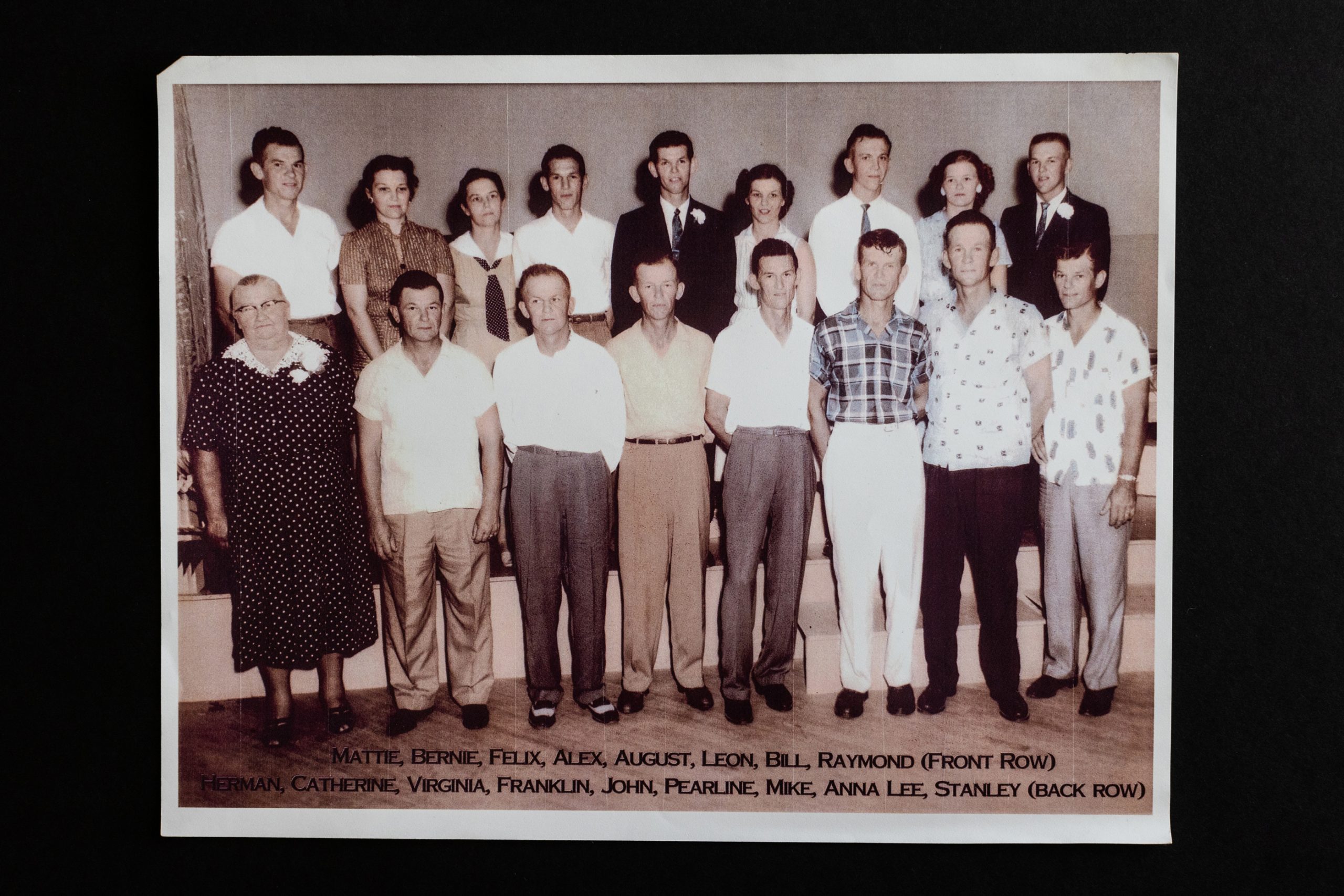 “Alex was like a guardian to us,” Anna Lee says fondly, pointing to Alex’s smile in a photo of all the siblings taken after Buster’s wedding in 1955.