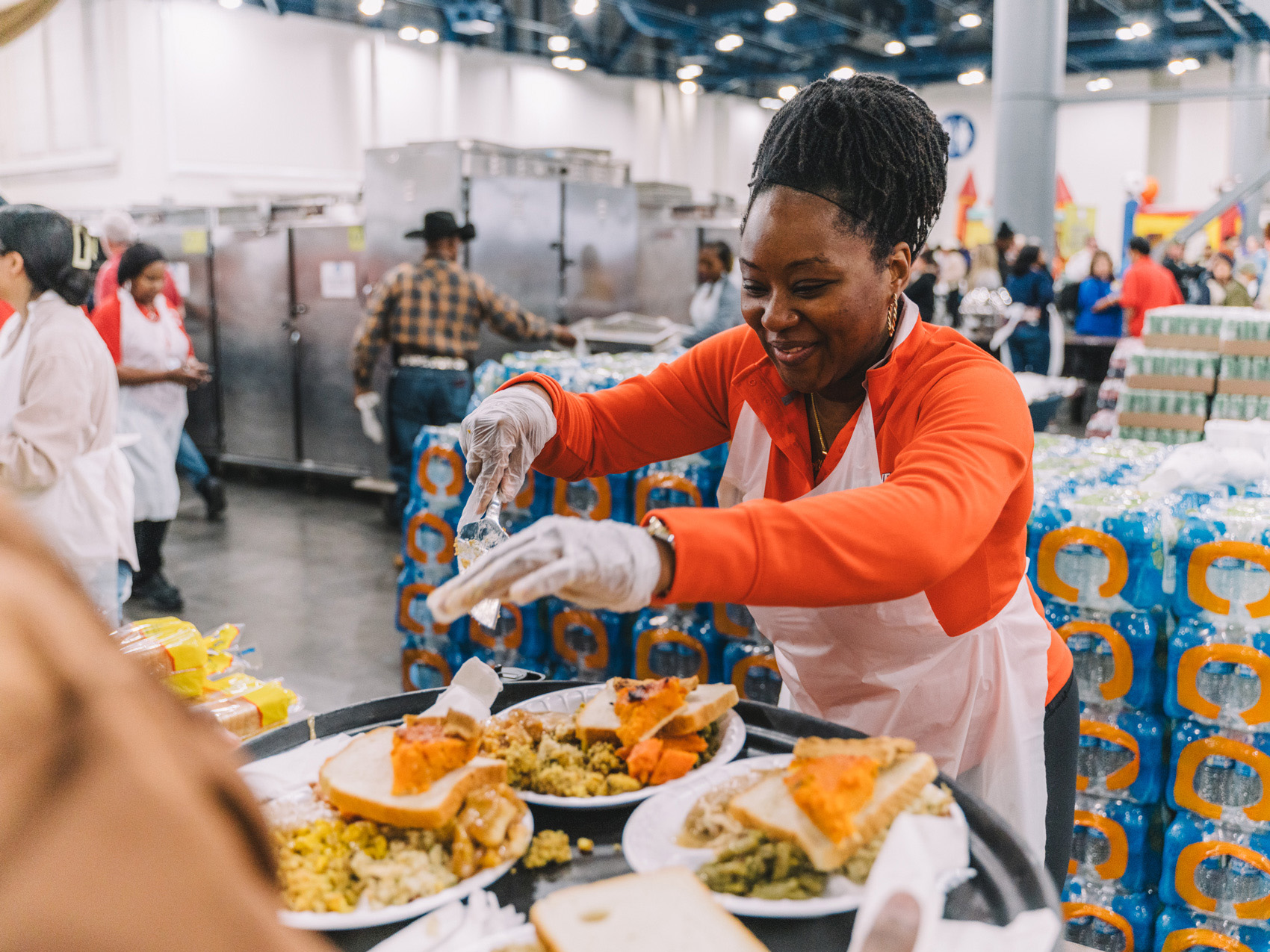 Photographer Joseph Bui spent time with City Wide Club, at their 46th Annual Super Feast, in downtown Houston. This is one of many events where local volunteers embody the holiday spirit and give back to others in the community. Super Feast is widely regarded as the “Nation’s Largest Feeding and Turkey Distribution,” allowing thousands of families to receive all that they need for a holiday meal. Super Feast, where volunteer shifts were sold out even the day before Thanksgiving, has a host of different options: dine in to receive hot turkey dinners, drive thru to pick up frozen turkeys and baked goods. Beyond food, others volunteered their time giving free hair cuts and helping others look through clothes and shoes to take home. Bui documented moments of cheer and generosity that embody Houston’s heart.