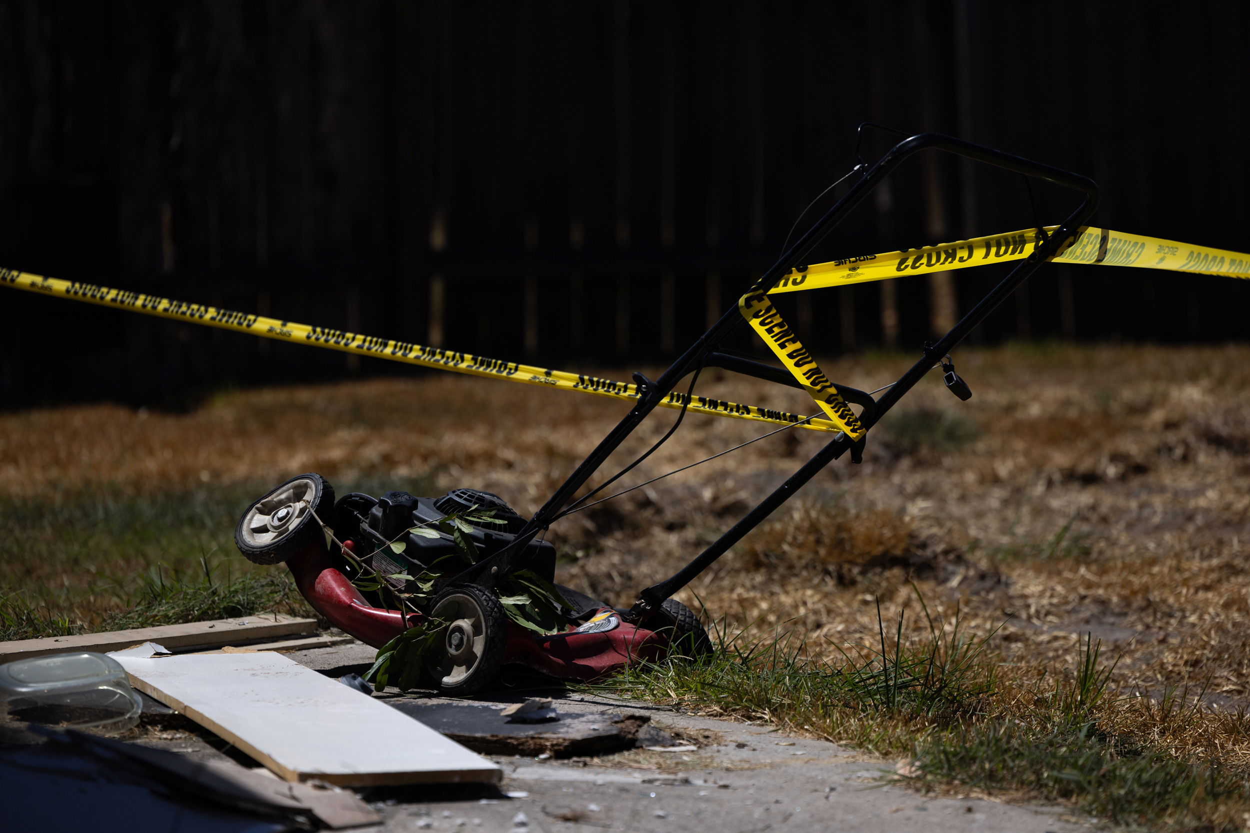 Craig Brown, who has lived across the street from the destroyed home for 15 years, said the sound of several gunshots echoed across his cul-de-sac Thursday evening after police arrived at the scene. Brown’s Ring camera captured authorities leading his neighbor and her two sons out of the house and into the back of a patrol car after the shots were fired.