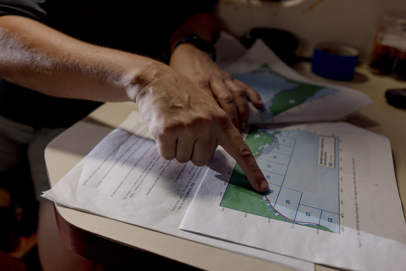 On the data sheet, Danny Martinez, a TPWD tech since 2019, writes up every predator they find. For the bodiless shark, he simply writes “just head.”