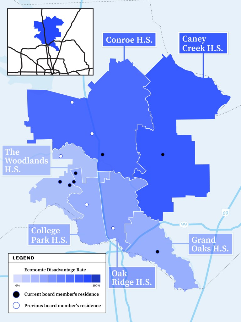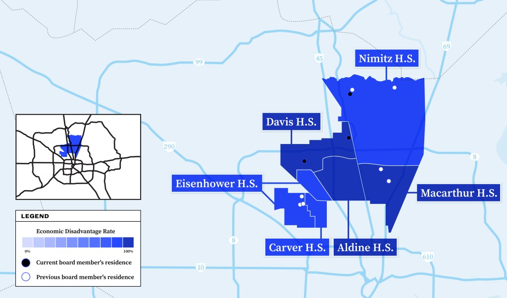A similar pattern has played out in 47,500-student Humble, where most board members have clustered over the past decade in whiter, more affluent sections on the district’s north side.