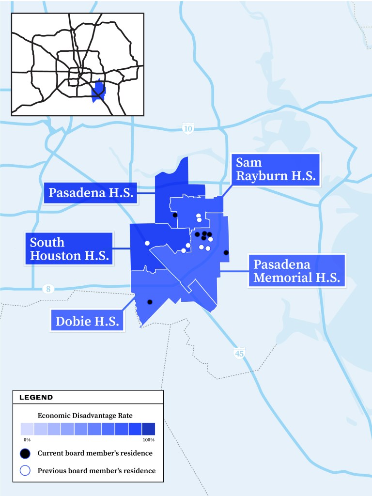 Despite Pasadena’s wide expanse, the district’s school board representation has been concentrated in the middle of the district, where every trustee but one has lived within a three-mile radius over the last decade.