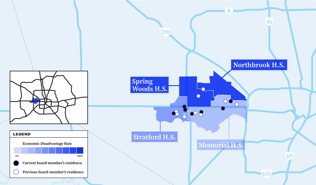 - Several Houston-area school boards — including Katy, Pasadena and Spring Branch — are filled with trustees from wealthier parts of their districts.