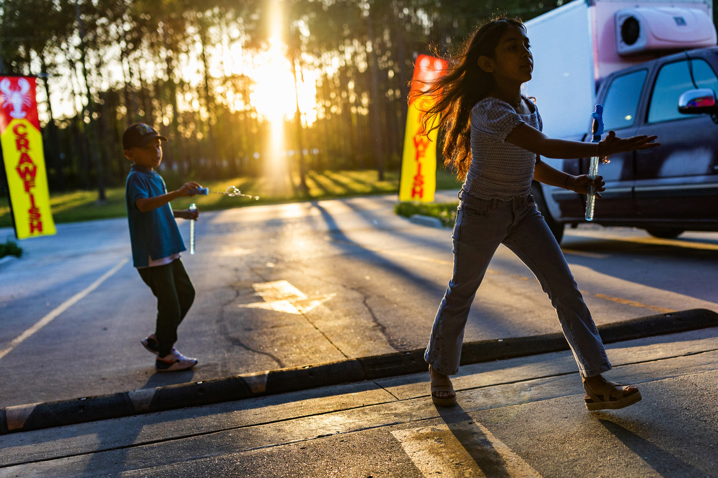 On a Friday evening in April, Susana tends to customers that pull up to the drive-thru before stepping away to keep an eye on her family’s children. She blows bubbles with the kids as the sun sets.