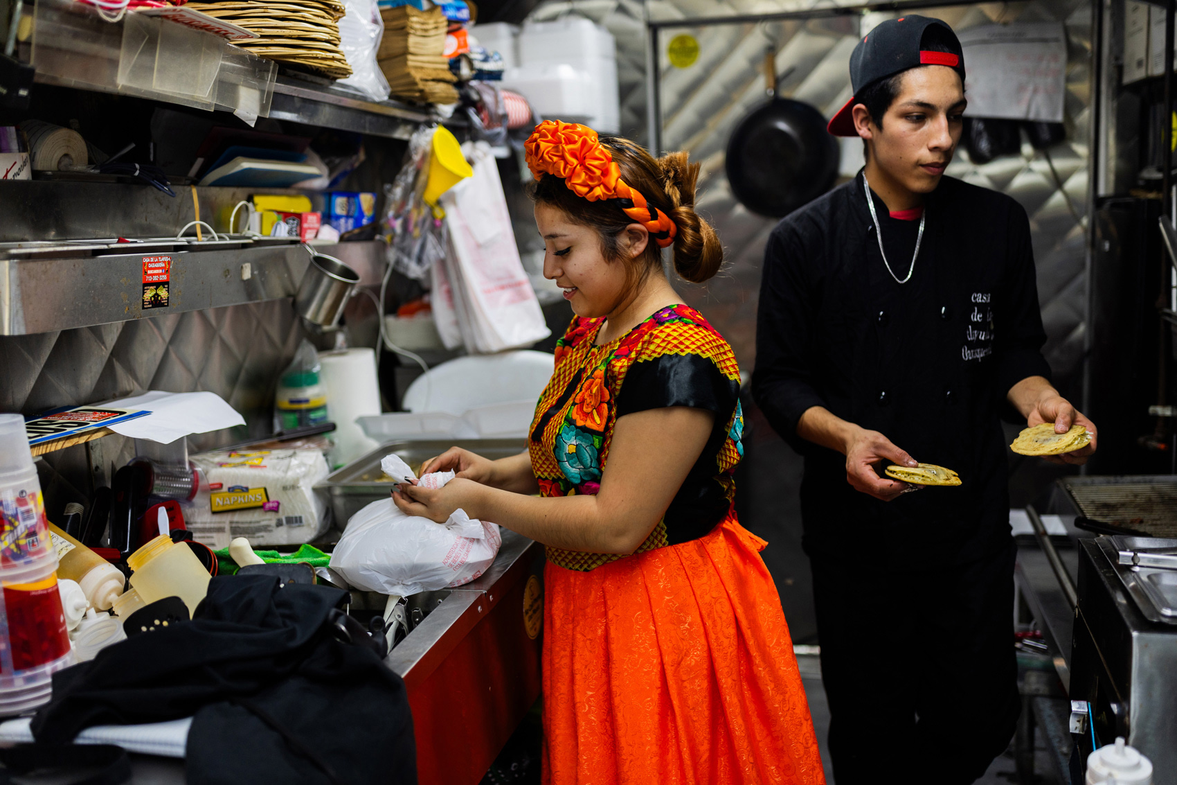 On a Friday evening in early March, Irving’s food truck is decked out in traditional sugar skulls and flowers from his home state. One of his employees is dressed in traditional Oaxacan clothes — a black, orange, flowy, and embroidered dress — as she rings a bell to notify a customer their food is ready.