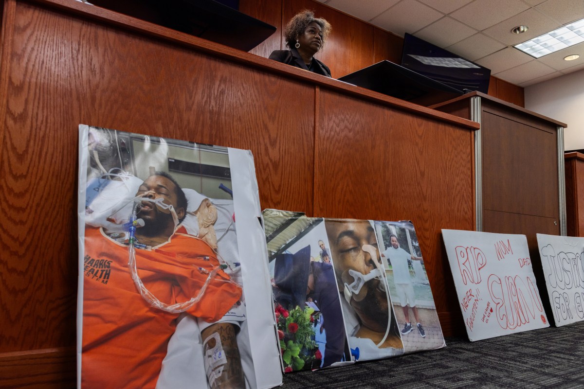 About 25 people filed into a small courtroom at the school’s Earl Carl Institute for Legal & Social Policy, including family and friends of individuals who died at the Harris County Jail, as well as supportive community members. It was the latest effort to bring attention to conditions at the jail run by the Harris County Sheriff’s Office, which faces scrutiny from state regulators and a lawsuit brought this week related to nearly two dozen deaths and injuries.