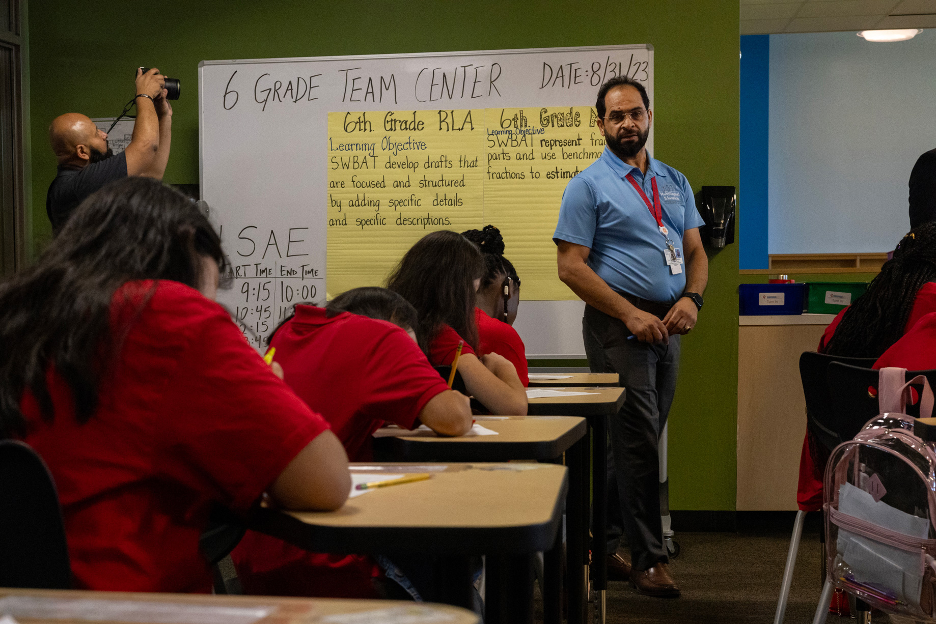 Across two days of tours, Miles articulated a near-constant stream of quibbles. He told one principal that teachers should have students fist bump before partner conversations. He corrected an instructor whose countdown timer was on her personal computer, but not on the projector screen. And he noted that his curriculum team should revisit whether one classroom’s written learning objective was too long.