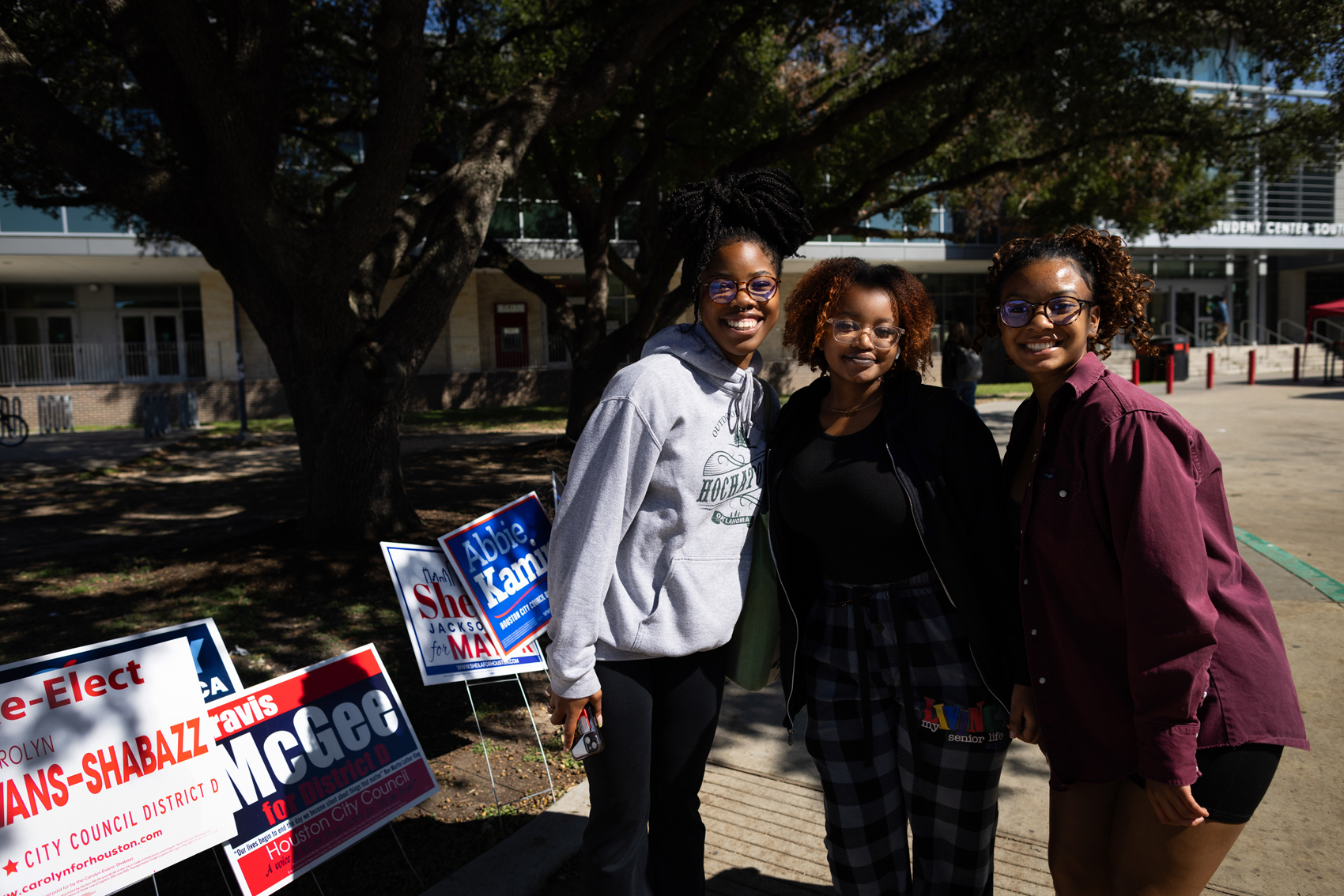 There was a flurry of activity outside the building last Friday, the final day of early voting ahead of Tuesday’s election, but when freshmen A’Joy Benn, Tori Macharia and Jerami Hurd strolled out among a constant stream of students, voting was the last thing on their minds.