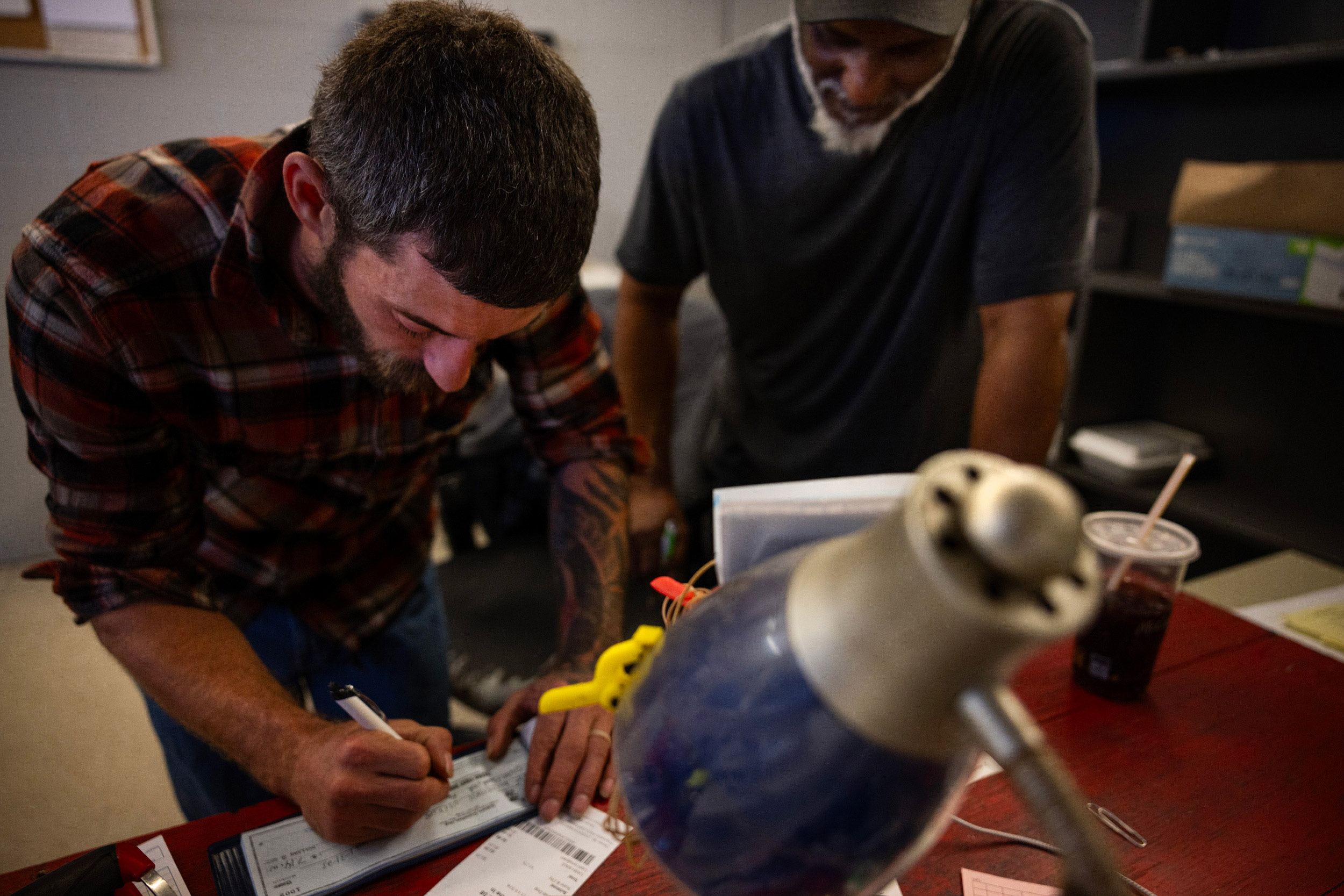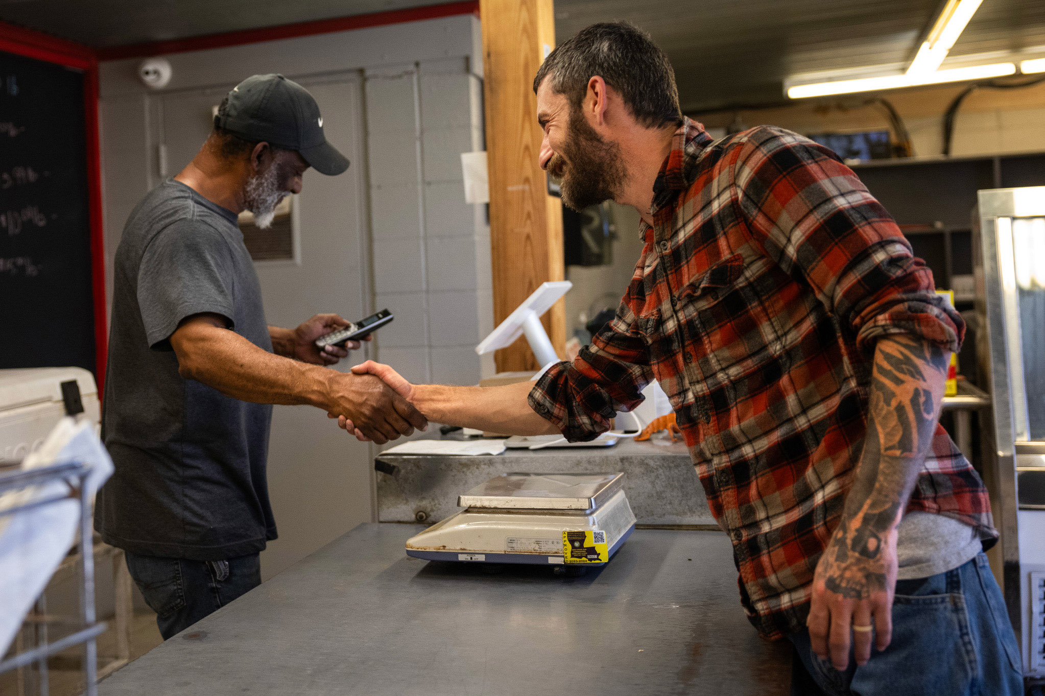 A half hour later, more wholesale customers show up to Crawfish Corner from Long Beach, Mississippi – having driven three hours west to pick up crawfish. They get five sacks from Demouchet. Since crawfish season began, the Mississippi crew drives to Louisiana for catch at least three times a week. They recognize Rozelle, too. The industry spans far and wide, but the community is close-knit.