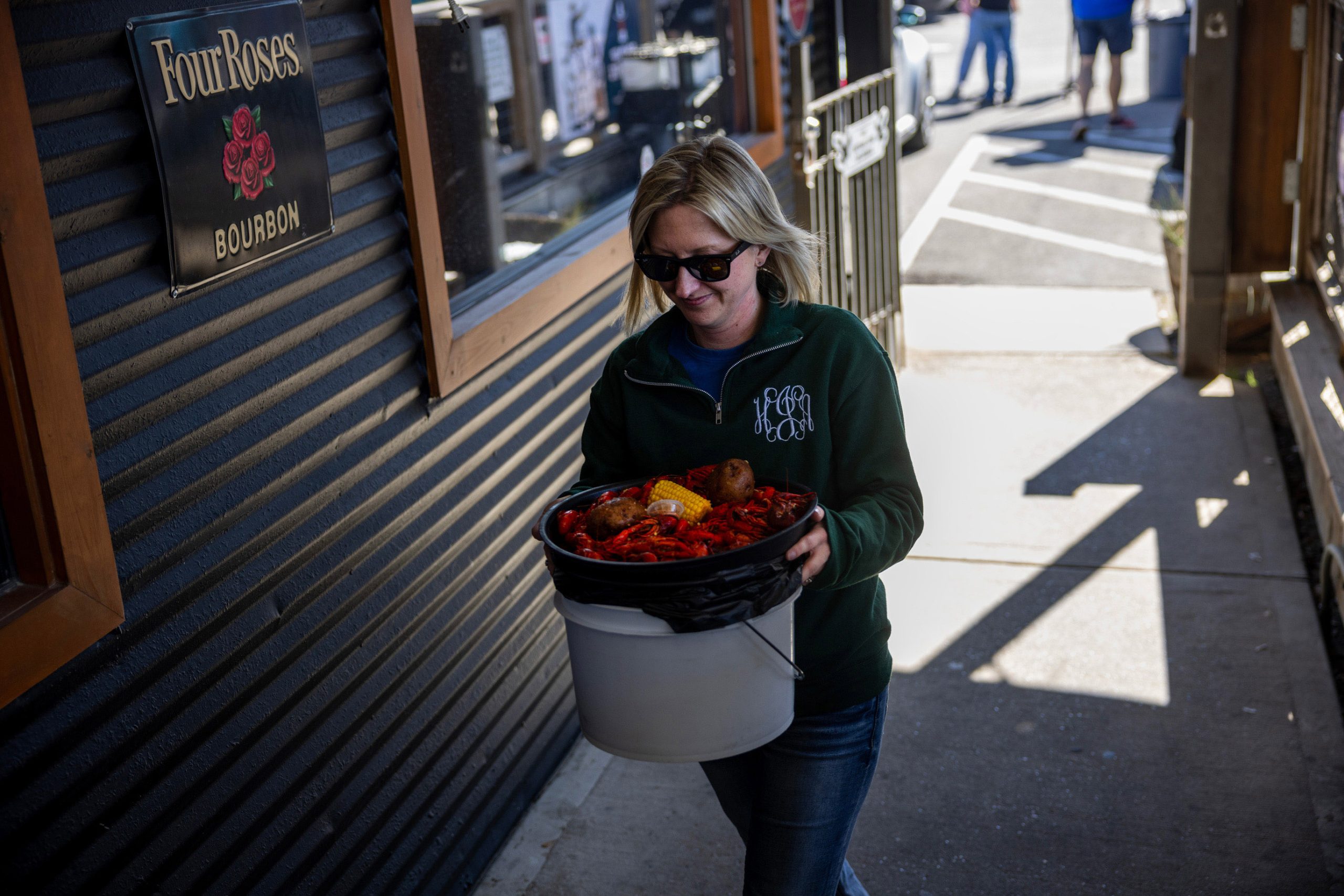 The two women spend their weekends working the pop-up on top of their full-time jobs on weekdays. Today, they are outside Wakefield Crowbar, a bar and restaurant in the Heights, selling crawfish at $13 per pound. Last year, the same amount was $8 per pound.