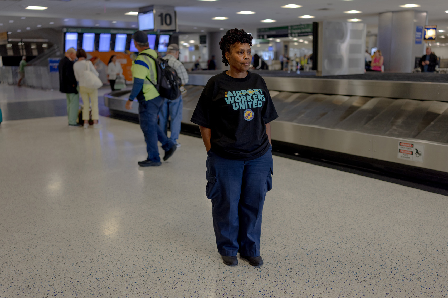 Her lunch break is at 6:30 in the morning, just after she arrives, because her employer doesn’t want the team to waste time during the busy airport hours. Once she let her teammate leave to use the restroom and her boss told her to stop that.