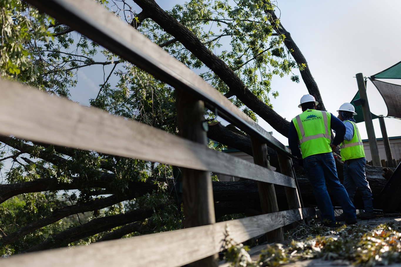 “Once we started clearing some of this stuff away, that’s when you see that there was a giant branch you didn’t know about dangling over the pathway,” Wallace says. As the devastation revealed itself, so too did other problems: The zoo needed a skilled crew of tree experts to begin hacking and stacking the tree debris.