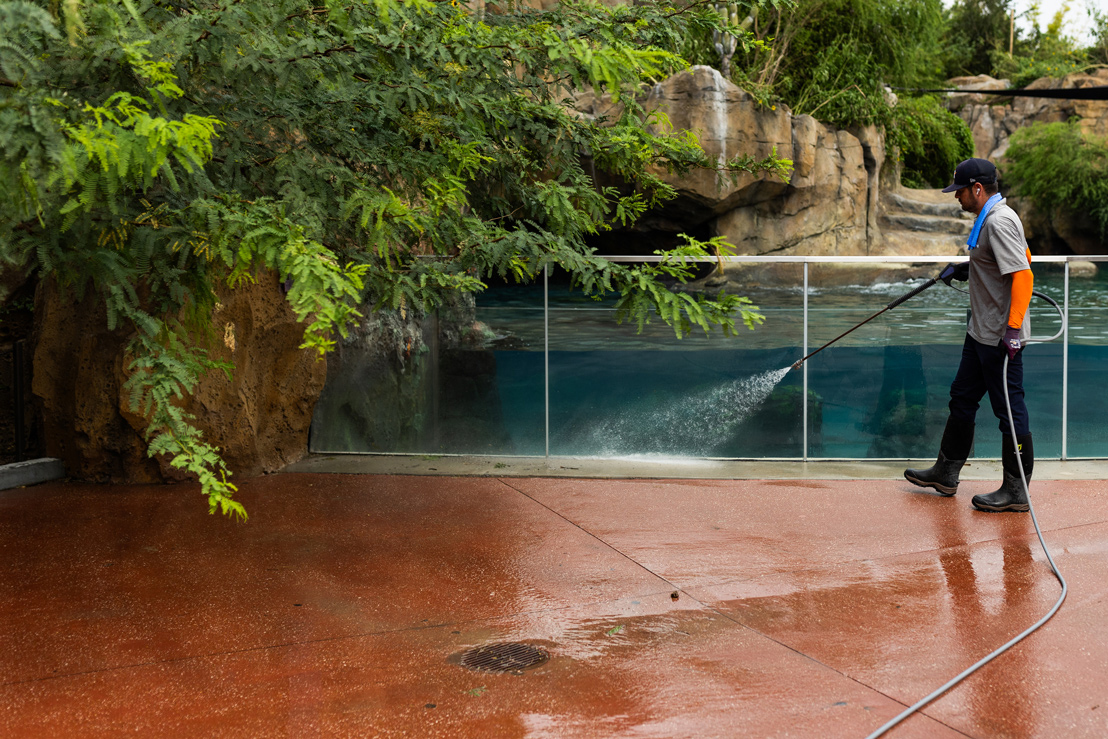 Galapagos, a $72 million exhibit that opened just last year, sustained more damage than any other exhibit within the zoo. As the rainwater mounted outside, it trickled past the sandbags and down the incline where zoogoers wander below the sea lion exhibit through a much-beloved tunnel. On Thursday morning, a crew of workers crouch with hammers in hand, punching out sheetrock to reveal tired puffs of pink insulation, which is carefully rolled and tucked into garbage bags. It will take a few days to repair this part of the zoo, and it’s likely, Wallace says, that when the zoo does reopen, sections of this exhibit will remain behind barricades to ensure guest safety. The children’s zoo will remain closed for at least several more days, Wallace adds.